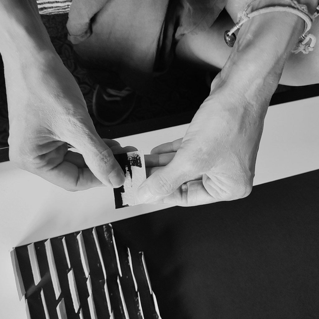 Anche il legno diventa presto uno dei suoi materiali; lo taglia, lo leviga, accosta lamine di diverse misure e spessori; l’idea è dare tridimensionalità al segno; la maggior dei lavori sono grafico-tridimensionali e di forte impatto cromatico; nasce la serie TRAME. Dall’argilla al legno e dal legno al metallo; nel 2015 impara a saldare; recupera il metallo, lo unisce, lo piega, lo trasforma in un racconto che parla di ciò che succede “intorno”; di incontri, di cielo, di luna, di vento. Nel 2017 pubblica “Imperfetti Equilibri”, un catalogo dedicato ai metalli e realizzato in occasione di una mostra personale nel Comune di Merate dove da poco si è trasferita. Nel 2019 torna a lavorare sulle trame; il segno e la grafica sono elementi essenziali che inevitabilmente si fondono con i materiali che trova, che incontra, che sente. Nel 2009 la prima mostra personle, da allora l’attività espositiva si intensifica collaborando con enti e gallerie.