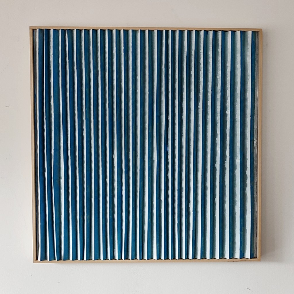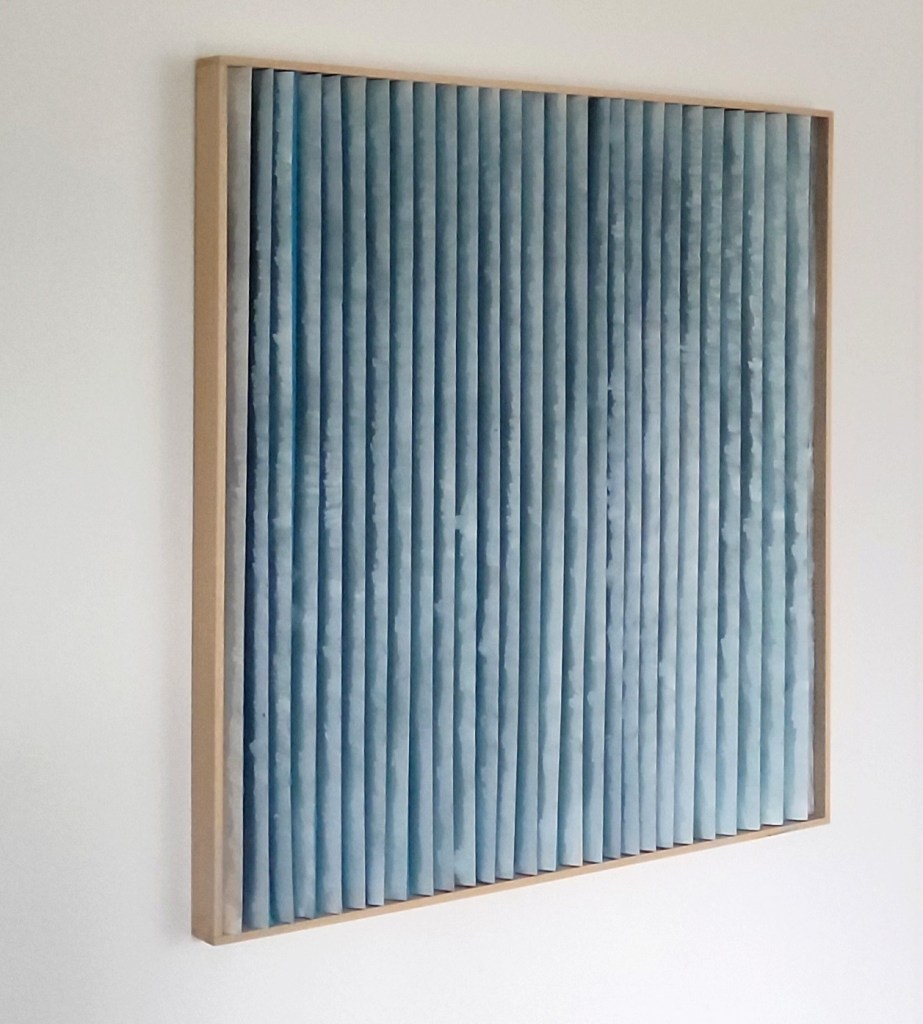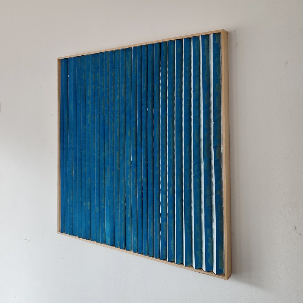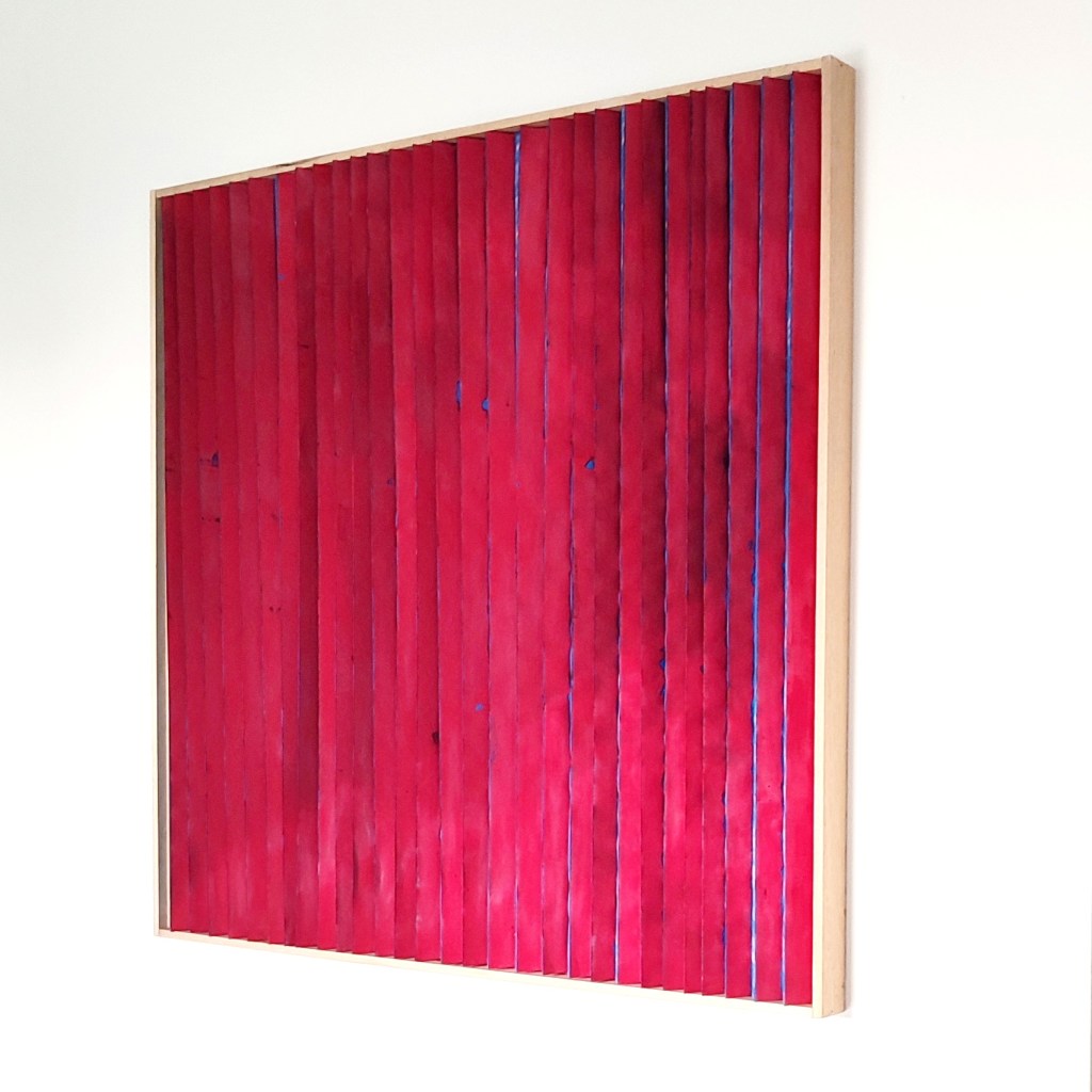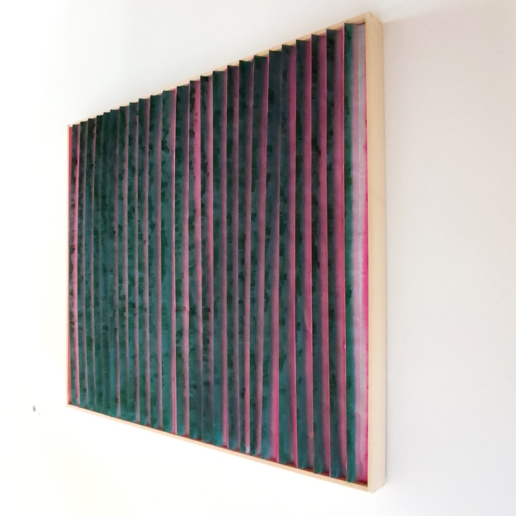 Il tessuto animato invita ad una molteplice lettura dell’opera; il colore cambia a seconda del punto di osservazione trasmettendo sensazioni diverse, come a proporre visioni alternative, possibilità nuove, punti di vista differenti. Le pieghe, custodiscono come scrigni immaginari emozioni che invece affiorano all’apice delle stesse. Un tempo, una melodia che cambia attraverso il colore e la texture.