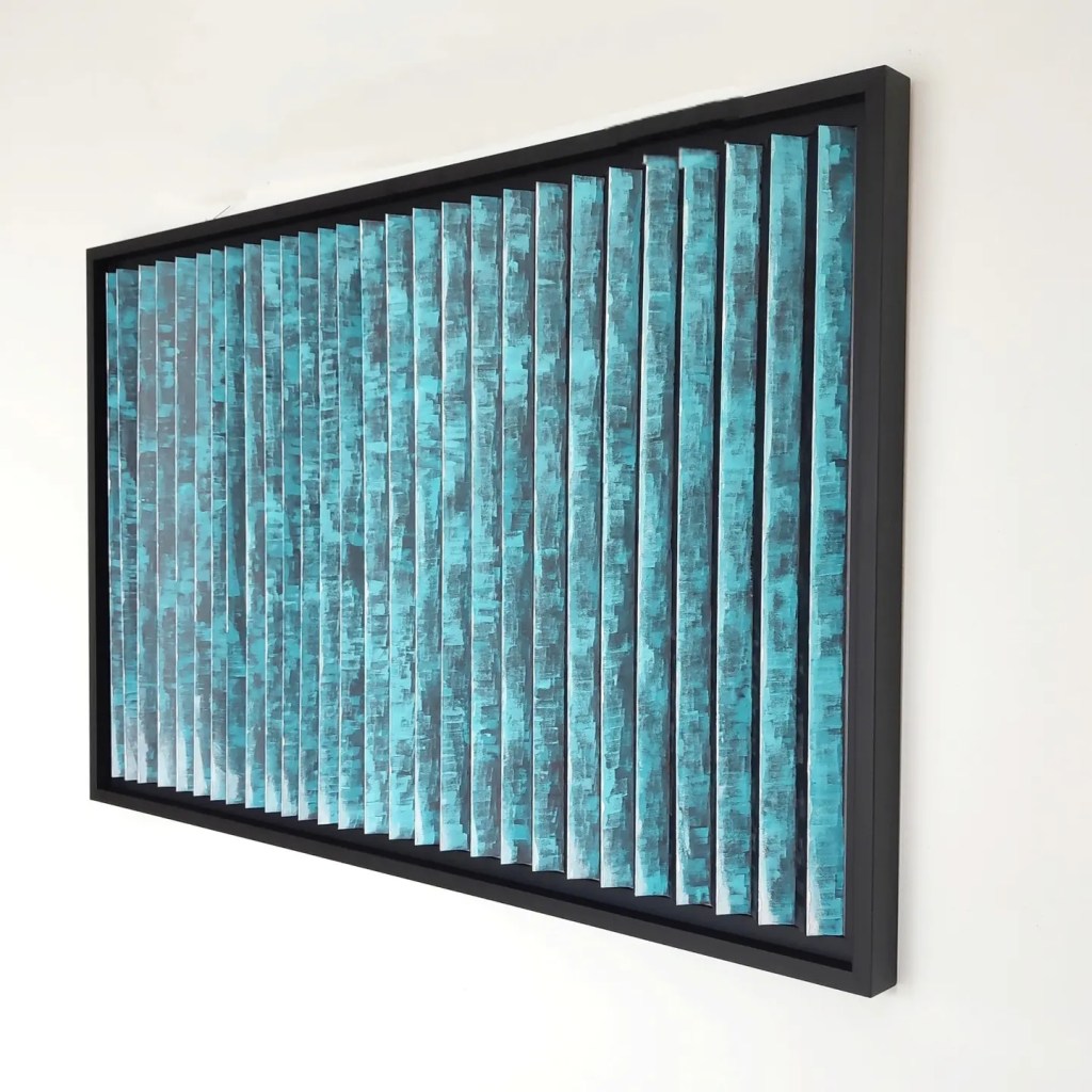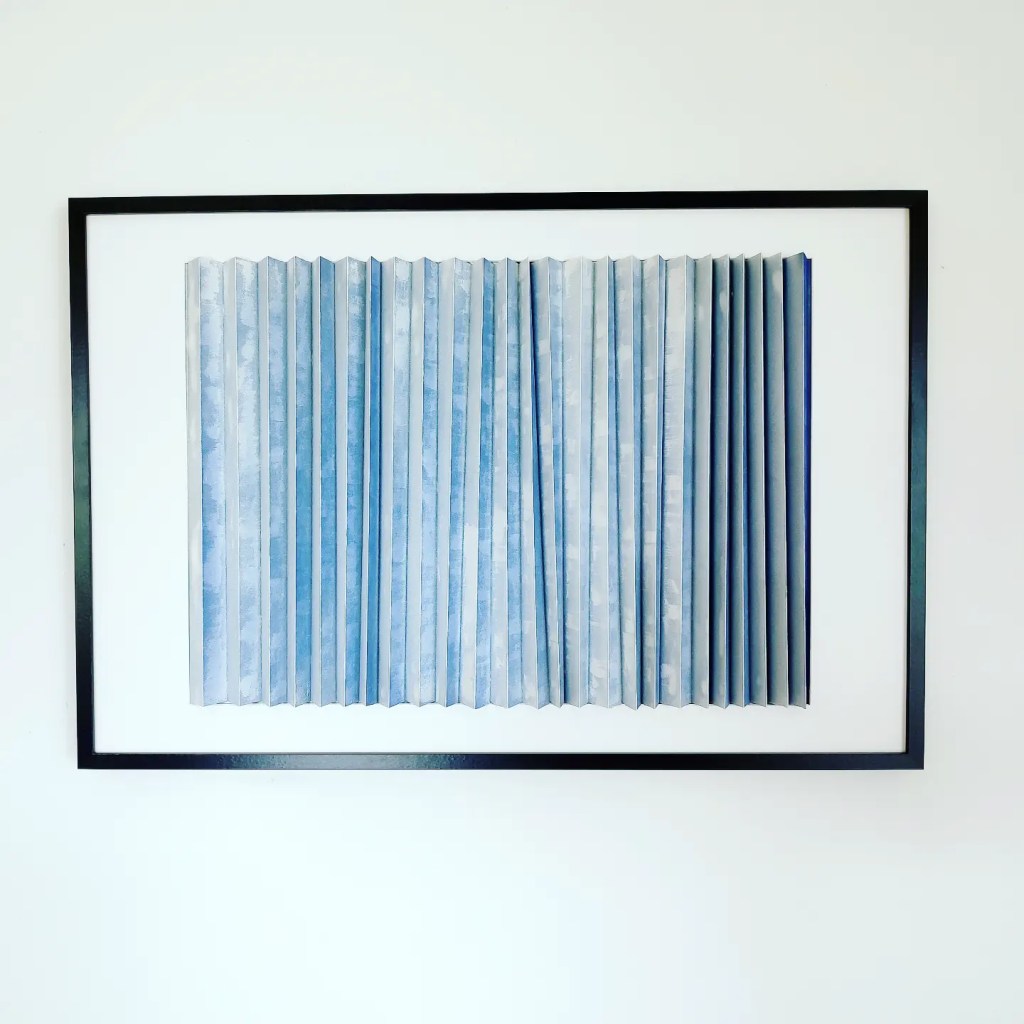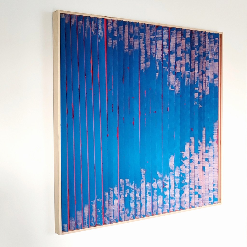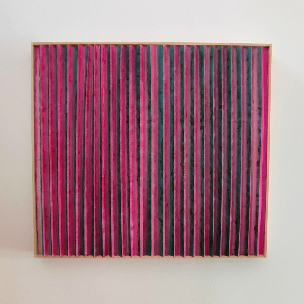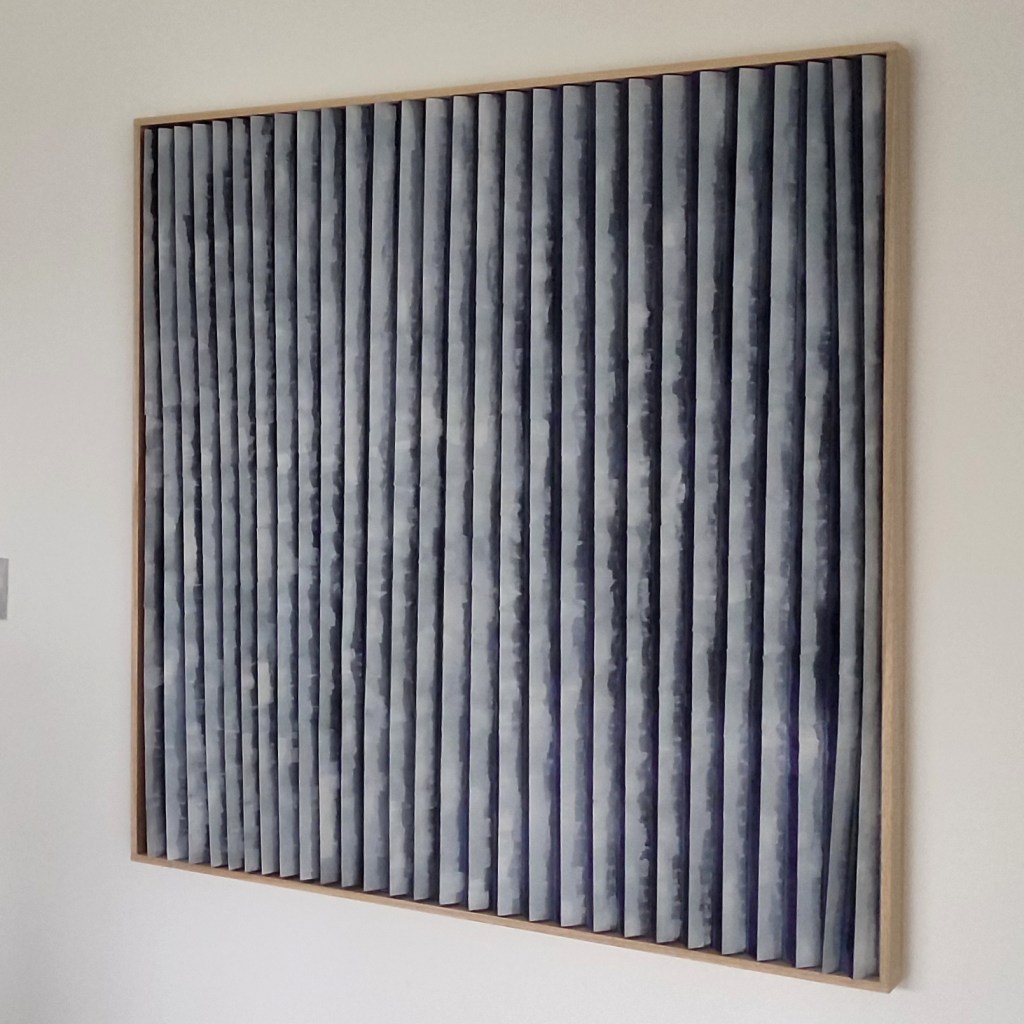 Il tessuto animato invita ad una molteplice lettura dell’opera; il colore cambia a seconda del punto di osservazione trasmettendo sensazioni diverse, come a proporre visioni alternative, possibilità nuove, punti di vista differenti. Le pieghe, custodiscono come scrigni immaginari emozioni che invece affiorano all’apice delle stesse. Un tempo, una melodia che cambia attraverso il colore e la texture.